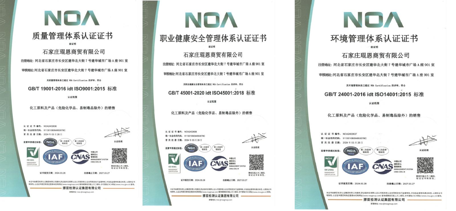 通過(guò)ISO45001職業(yè)健康安全管理體系認(rèn)證,彰顯了企業(yè)對(duì)員工健康與安全的重視。通過(guò)完善安全管理制度、強(qiáng)化風(fēng)險(xiǎn)防控培訓(xùn)及改善工作環(huán)境,[企業(yè)名稱]為員工構(gòu)建了更安全、更健康的工作平臺(tái),助力企業(yè)與員工共同成長(zhǎng)。公司領(lǐng)導(dǎo)表示:“三體系認(rèn)證的通過(guò)是公司發(fā)展的重要里程碑。未來(lái),我們將以ISO標(biāo)準(zhǔn)為基石,持續(xù)優(yōu)化管理體系,推動(dòng)企業(yè)向更高效、更綠色、更安全的方向邁進(jìn),為行業(yè)高質(zhì)量發(fā)展樹(shù)立標(biāo)桿。”
